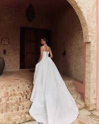 Effortlessly and chic, the Cattleya gown by Alena Leena summons a feeling of the countryside’s long summer days. This gown features a strappy bodice and a square neckline with a matched low-cut square back. Alena Leena Cattleya gown is for the brides seeking a chic and crisp feel on their wedding day.